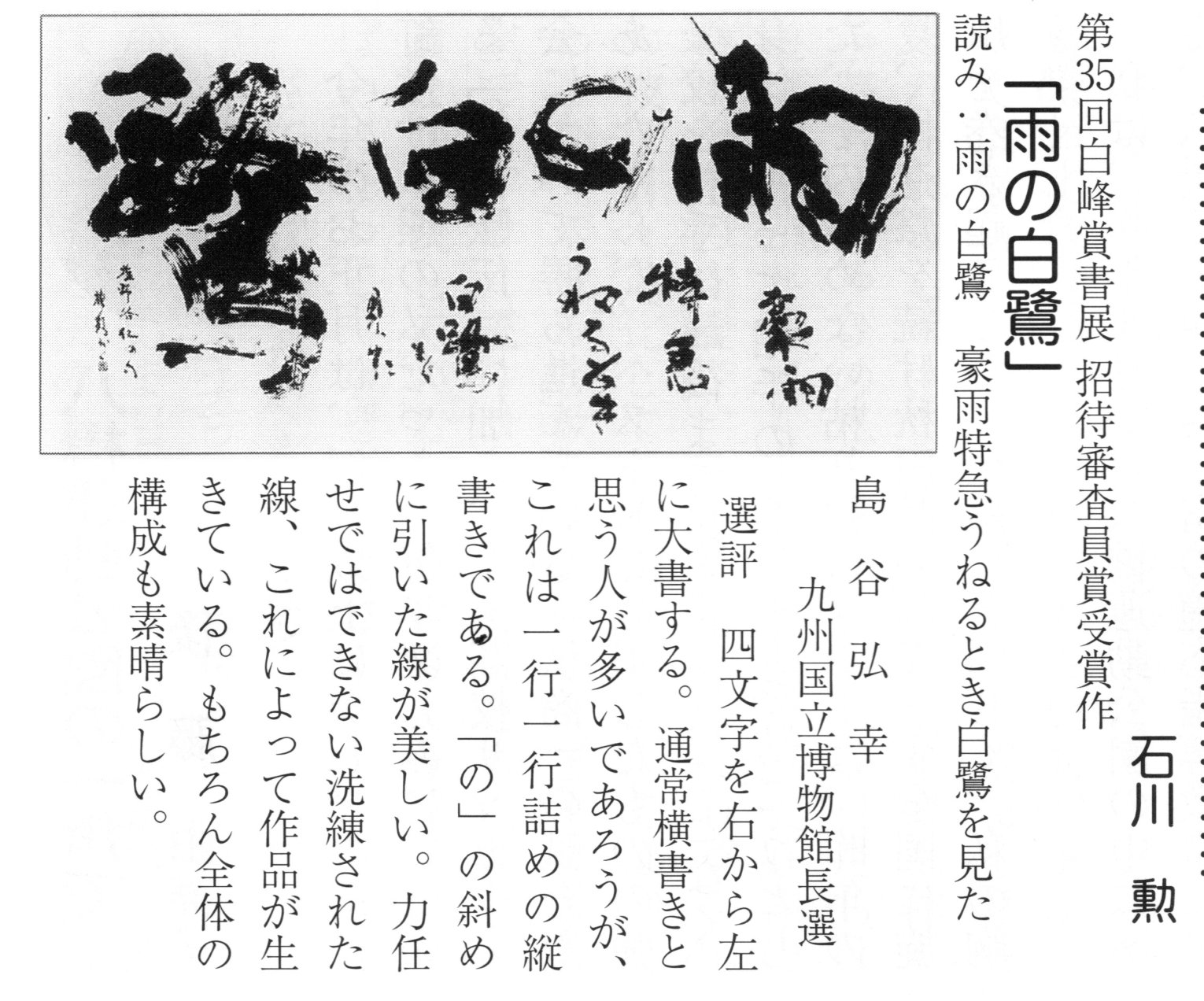 | 件名 | : 書「雨の白鷺」 石川 勲 |